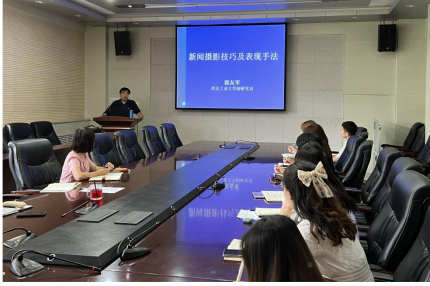 邀请学校党委宣传部专职摄影师郭友军老师,为院办教职工作了题为“新闻摄影技巧及表现手法”的专题培训。活动由学院党委副书记王丽主持。