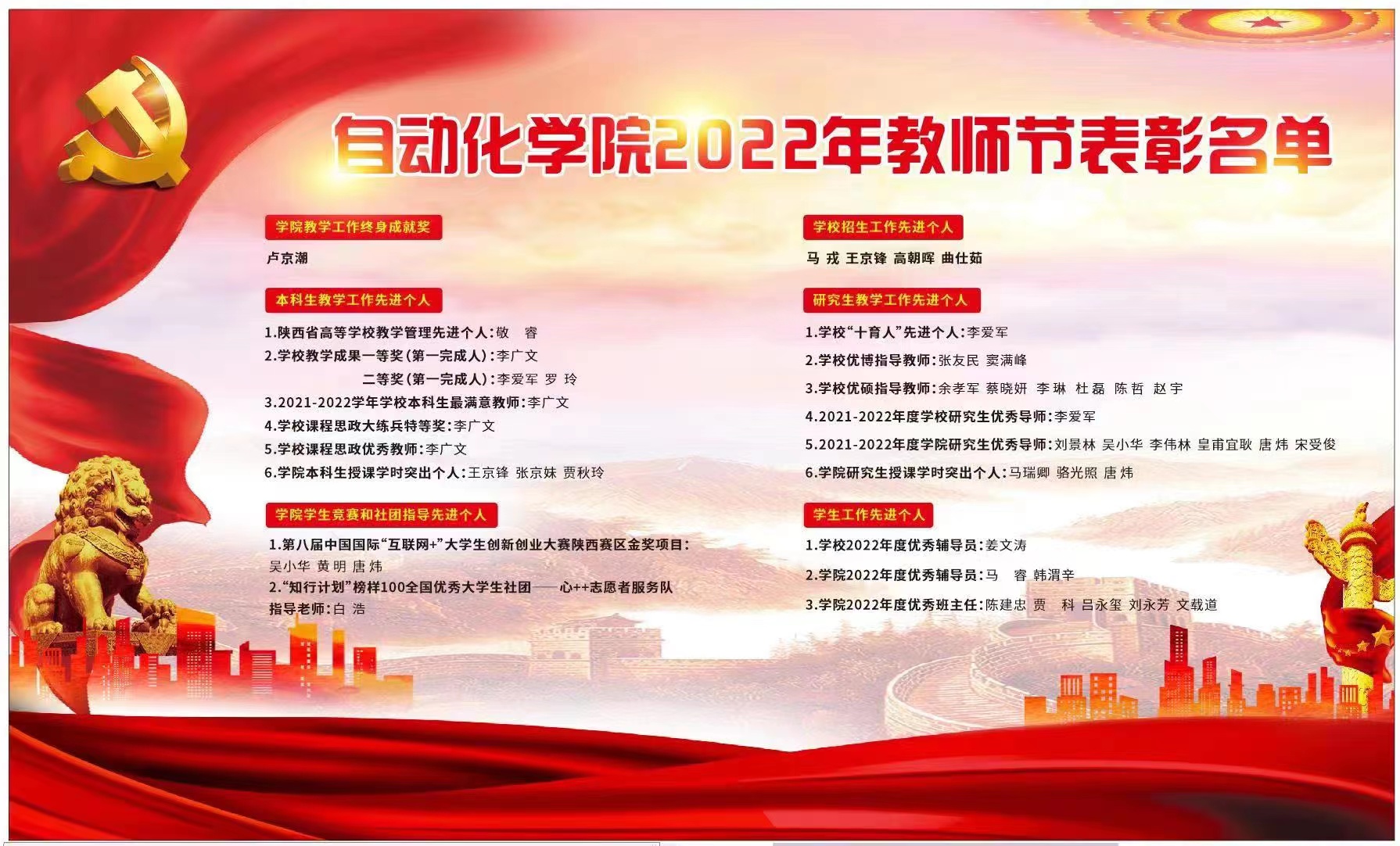 举行庆祝2022年教师节暨优秀教师表彰大会。院领导黄攀峰、王小旭、管峻、王丽,以及受表彰教师代表、青年教师代表、学生代表共计30余人参加大会。大会由学院党委副书记王丽主持。