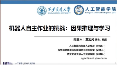 举办南山青年学术论坛(第六十七讲),特邀西安交通大学兰旭光教授开展了题为“机器人自主作业的挑战:因果推理与学习”线上学术报告。学院师生共100余人参加此次报告会。