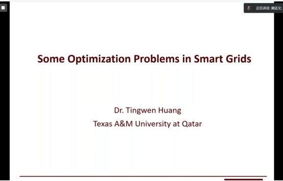 举办了南山(国际)讲坛(第二十七讲),特邀德州农工大学卡塔尔分校黄廷文教授作题为“Some Optimization Problems in Smart Grid”的线上学术报告。近百名师生参加了此次讲坛。