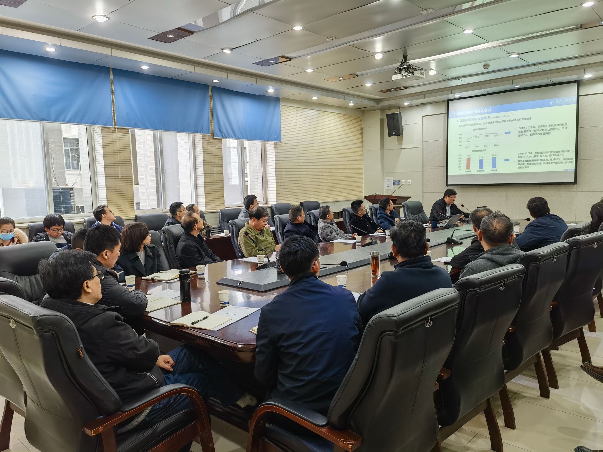 院长韩军伟通过详尽的数据对比和分析,介绍了学院人才队伍建设现状,指出了人才工作面临的问题和挑战,提出了人才工作的阶段性目标和相关举措。他强调,人才队伍是学院发展的基础,人才引育是师资队伍建设的核心,学院高度重视人才引育工作,希望与会教师献计献策、齐心协力助力学院人才工作破局突围,真正以更科学精准更有力有效的措施,全力以赴推动人才工作高质量发展。