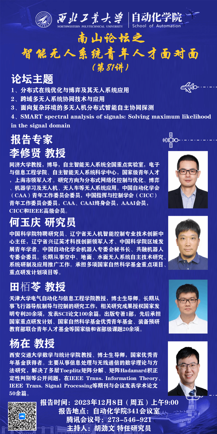 【论坛通知】动漫疯 南山论坛之智能无人系统青年人才面对面(第81讲)
