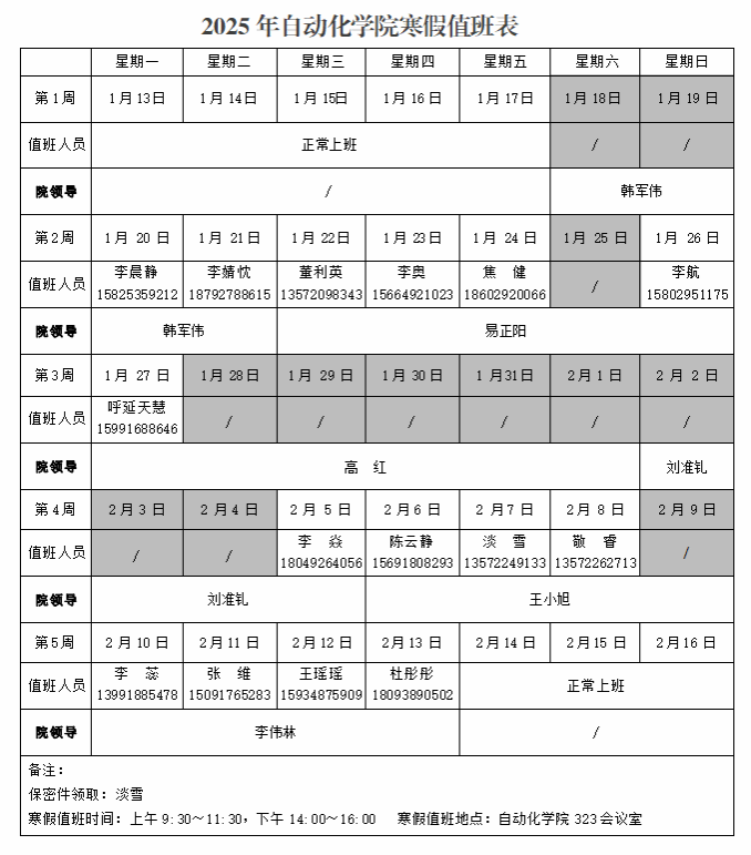 3.学院机关:2025年1月18日~2025年2月13日。2025年2月14日起正常上班。