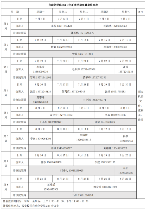 五、根据学校安排,值班时间为每周一至周五,上午9:30~11:30、下午14:00~16:30,值班地点长安校区动漫疯