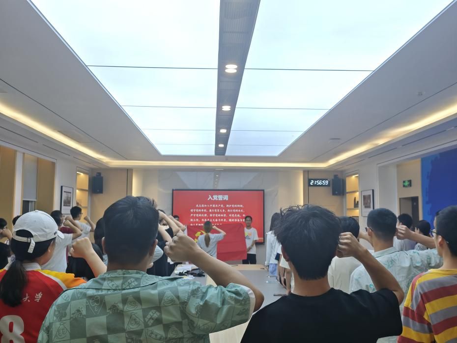 面对党旗,支部纪检委员吴紫仪带领同志们重温入党誓词。铮铮誓言表达了对党的无限忠诚和为党的事业奋斗终身的坚定信念,现场所有人都深受感染,重忆入党初心,接受党性洗礼。