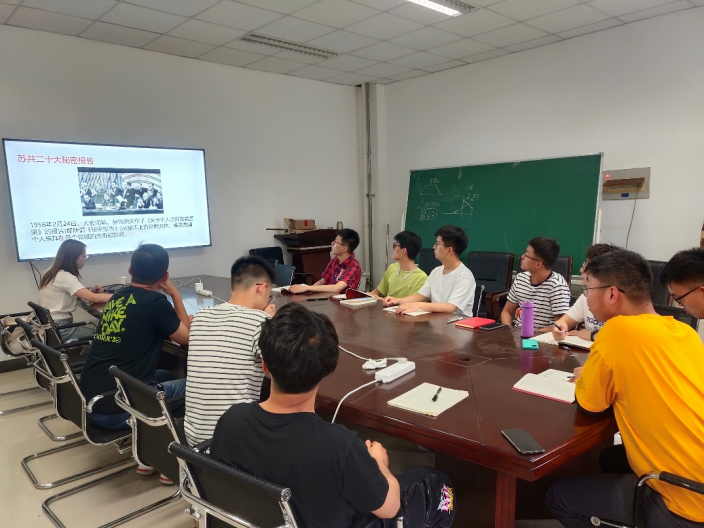 在交流讨论中,研究生第一党支部李柯澄、韩泽君同学发表了自己的感受。李柯澄表示虽然中国共产党的八大决议没有完全落实,但是,党的八大对中国自己建设社会主义道路的探索取得了初步成果。韩泽君表示中共八大对现在仍具有指导意义。现在正值国际形势风云变化之际,我们应该正确认识现在的国际国内环境,坚持实事求是的方针路线,深化经济体制,健全民主法治建设,为建设社会主义强国而奋斗。