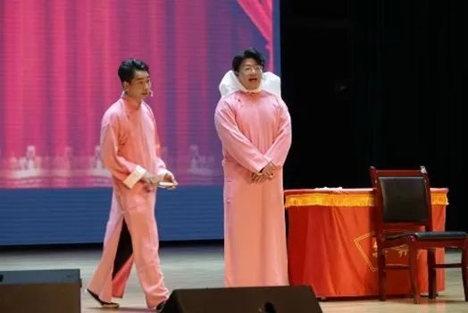 甜蜜过后,一张小桌,一个小凳,大学生艺术团话剧队乐翔社和他们的相声《捉放曹》迎着欢笑走来,激起欢乐不断。
