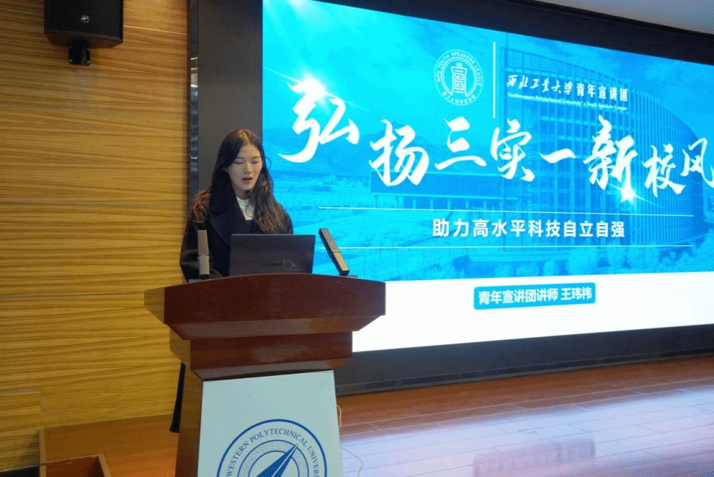 13日晚上,青年宣讲团讲师、计算机学院2023级本科生王玮祎同学带来主题为“弘扬三实一新校风,助力高水平科技自立自强”的团课。她结合校史,讲述了康继昌、李延年等西工大先辈的故事。播放《志愿军》电影片段时,西工大人“科技报国、冲锋在前”的精神风貌跃然眼前。团课还解读了党的二十大报告中关于科技自立自强的战略部署,引导同学们在科研中弘扬“三实一新”校风。
