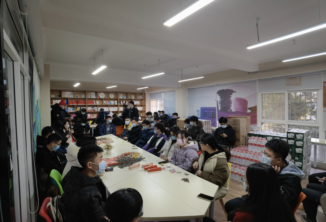 最后,全体留校学生合影留念,用镜头记录下这特殊、难忘、珍贵的春节。受疫情、科研等因素影响,2022年寒假我院共89位同学选择留校,学院高度重视留校学生的学习和生活,建立留校学生管理台账、留校学生微信群组,设立留校学生临时负责人,开展形式多样的新年慰问活动,全力保障留校学生度过健康年、暖心年、安全年。