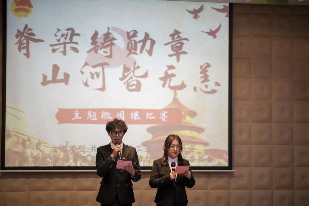 报告厅举行“脊梁铸勋章,山河皆无恙”主题微团课比赛的决赛。此次比赛以线上直播的形式进行,到场的评委嘉宾有:动漫疯