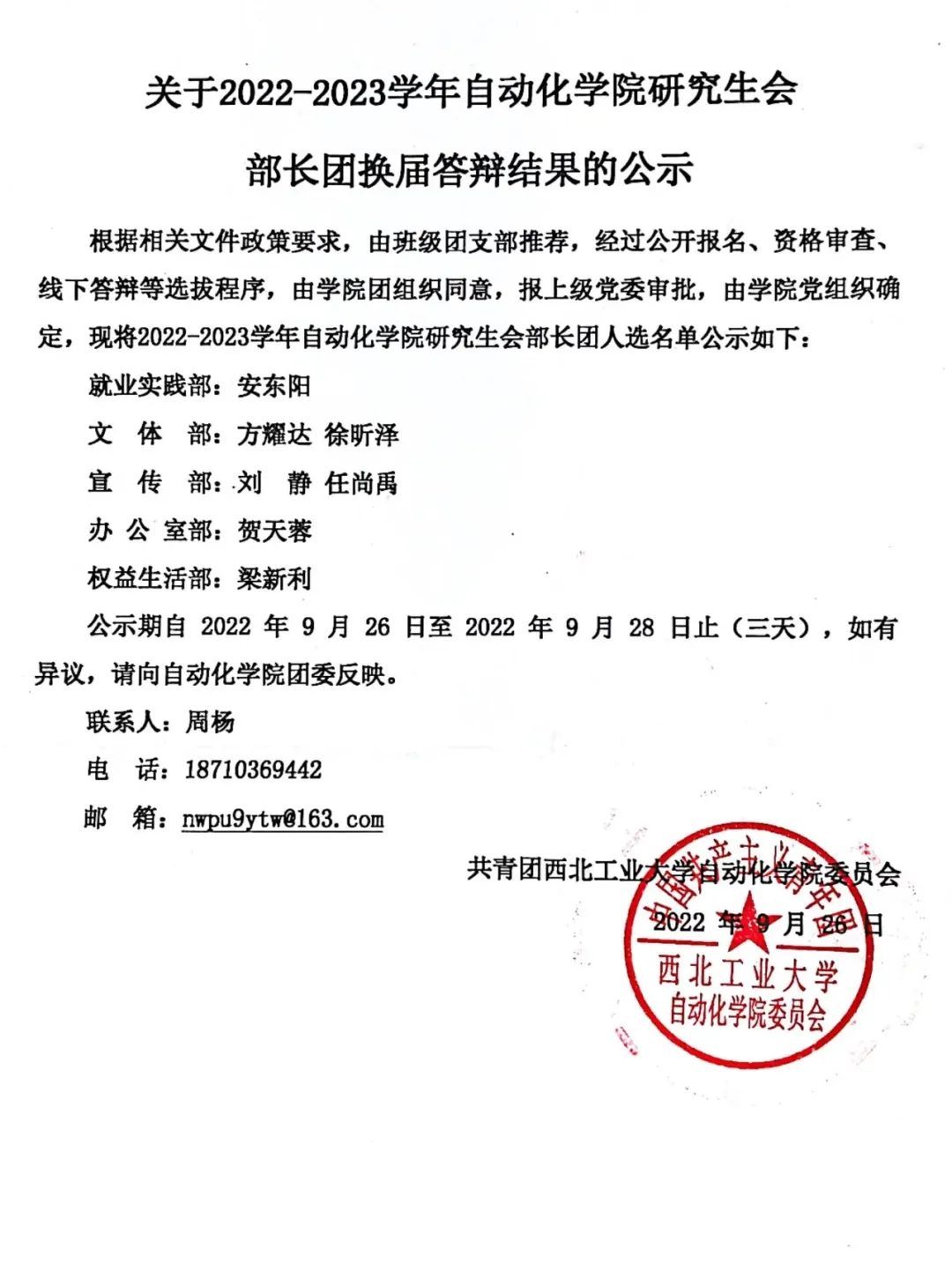 关于2022-2023学年动漫疯 研究生会部长团换届答辩结果的公示